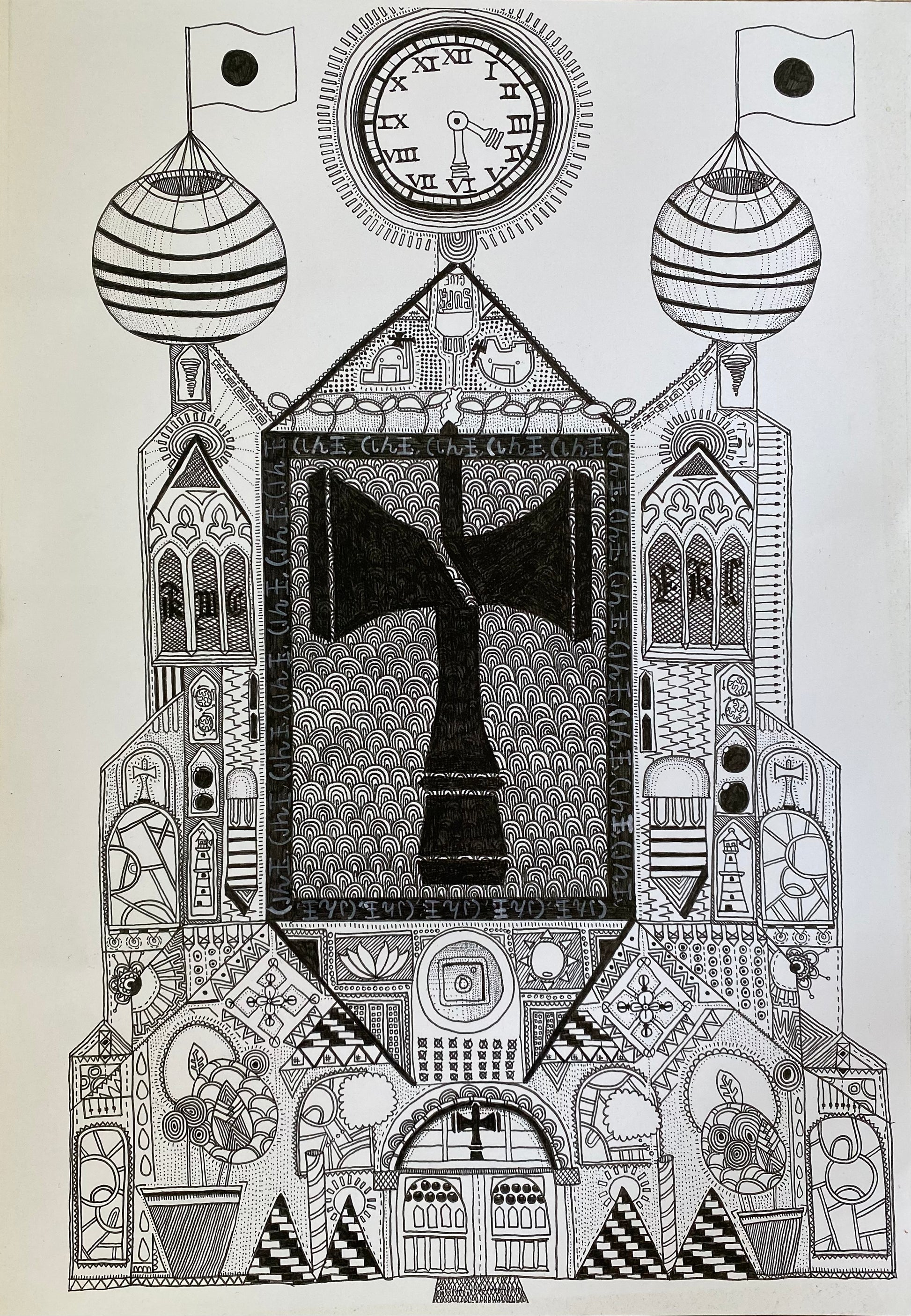Titled, Spirituality in Kendama, this piece features an incredible array of Kendama references interwoven into a magikal temple.