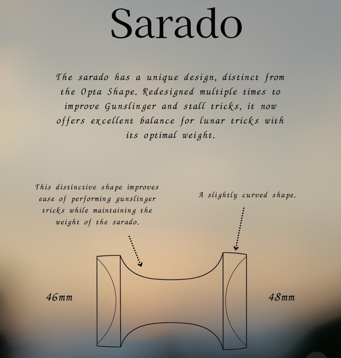 Building on the highly acclaimed Opta shape, Mira offers better control and balance for flips and taps. The redesigned Sarado improves gunslinger and stall tricks while maintaining the weight of the Sarado.